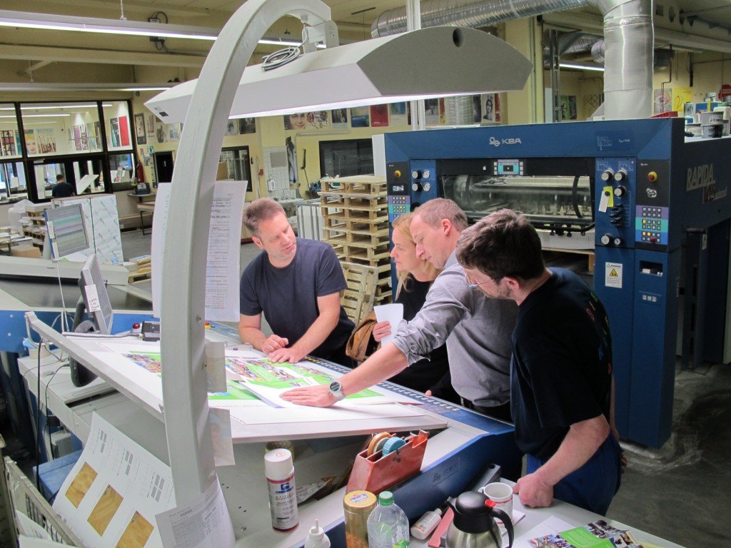 Ich bin hier, um sicherzustellen, dass die Farben genauso sind, wie wir es uns vorgestellt haben. Das Cover wird noch etwas heller gestellt, die Innenseiten sind perfekt. Nun kann es losgehen. Uns bleibt jetzt nichts weiter als zu warten – in zwei Wochen werden wir die fertigen Bücher in den Händen halten.